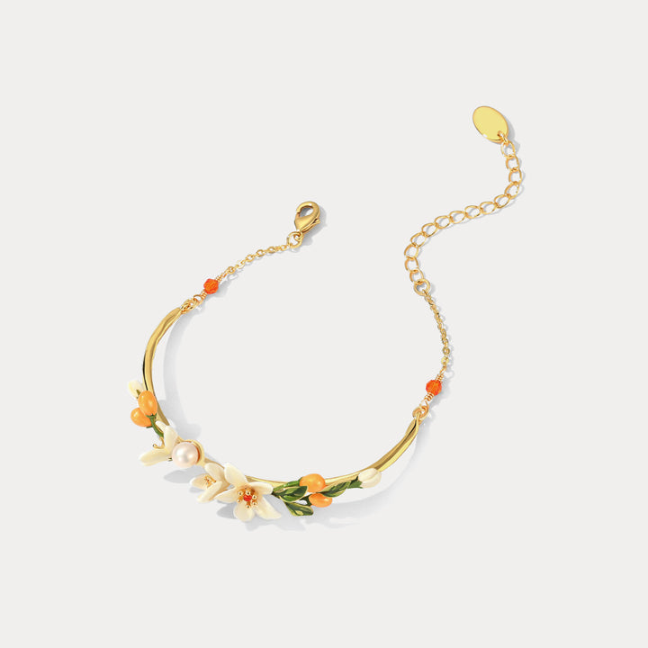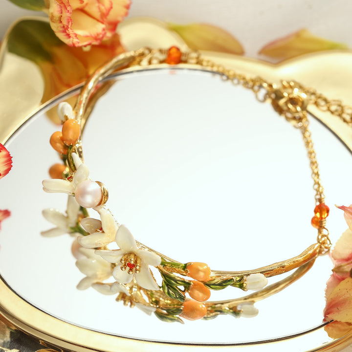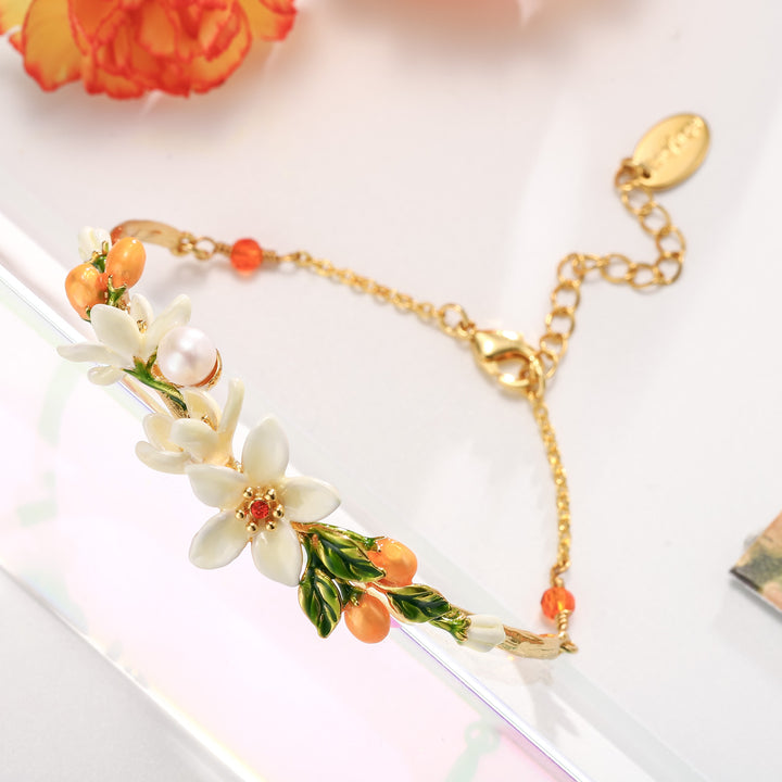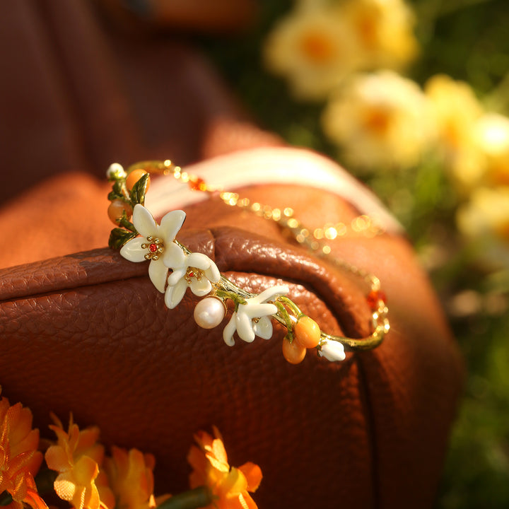 우리의 오렌지 꽃 팔찌는 정말 매혹적인 액세서리로 세부적이고 장인 정신이 절묘합니다. 황동과 에나멜로 제작 된이 매력적인 작품은 구경꾼을 전환해야 할 꿈꾸는 코티지 코어 미학을 발산합니다. 이 팔찌는 모든 복장에 우아함을 더할 수있는 쉬운 방법 인 부인할 수없는 사치와 세련미에 대한 진술입니다. Orange Blossom 팔찌는 Selenichast Online Shop의 Nature Jewelry 중 독특한 팔찌입니다. 웨이스트에게는 예쁘고 매력적입니다. 18K 골드 체인과 결합 된 에나멜 페인트는 매우 우아 해 보입니다.