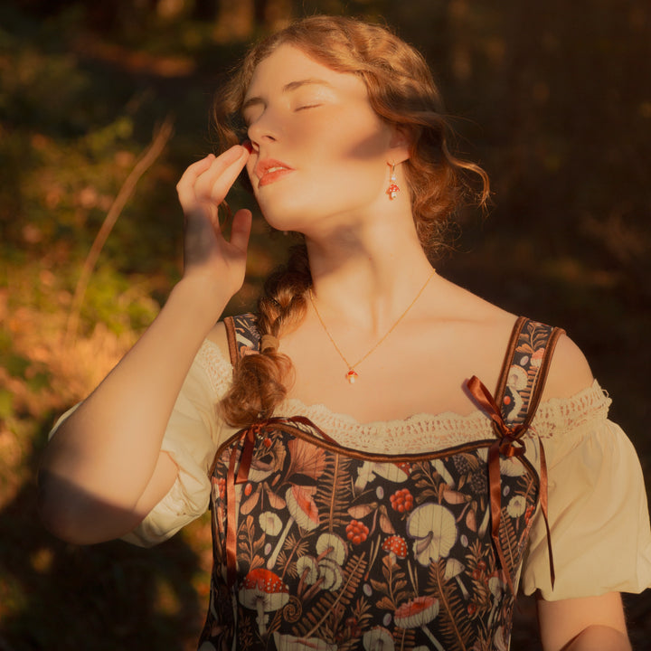 Add a touch of fairy-tale charm with this Mushroom Necklace. The red-capped white-spotted mushroom pendant shines with vibrant enamel and hangs on a delicate gold bead chain. This gold mushroom necklace symbolizes new beginnings and hope, carrying your best wishes wherever you go. Perfect for everyday wear, the necklace mushroom adds a playful detail to work outfits and pairs beautifully with dresses for a romantic touch. Whether you want to refresh your style or find a unique accessory, this mushroom pendant necklace combines meaningful symbolism with a distinctive design to effortlessly enhance your look.