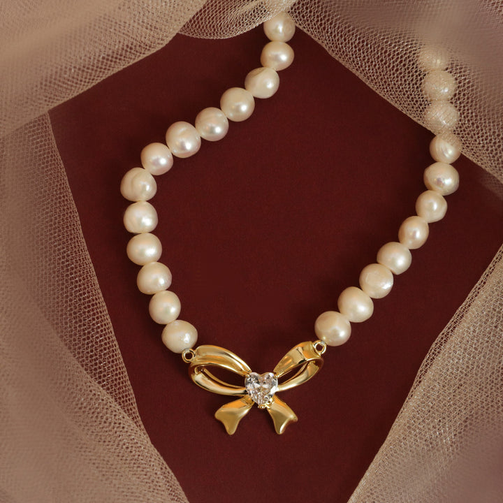 Unleash your daring side with the Pearl Bow Necklace! This bold and elegant necklace features a stunning pearl bow that will make a statement wherever you go. It's the perfect accessory for those who love to take risks and stand out from the crowd. Take on any challenge with this striking piece!