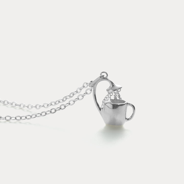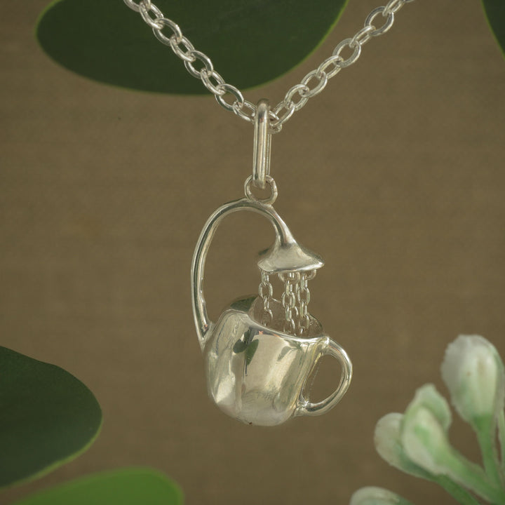 Meticulously sculpted in radiant 925 sterling silver, this Watering Can Necklace flows with whimsical charm. Its spout and handle intertwine playfully, while delicate fringed streams symbolize life's nourishing currents. An ode to embracing the absurd, the useless - for therein profound meaning resides. Adorn yourself with this talisman of self-expression, nurturing fertile spirits to blossom through authenticity's unconventional paths.
