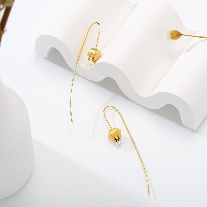 Gold Tulip Hook Earrings