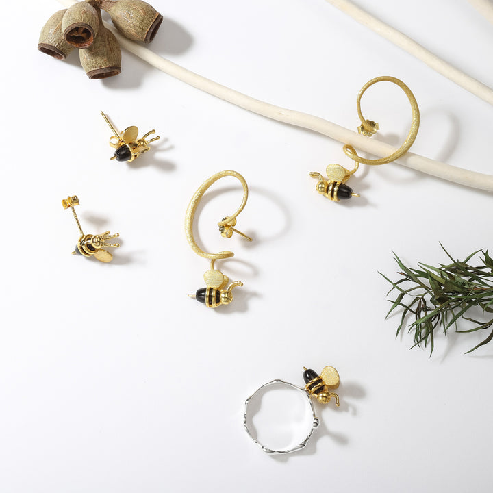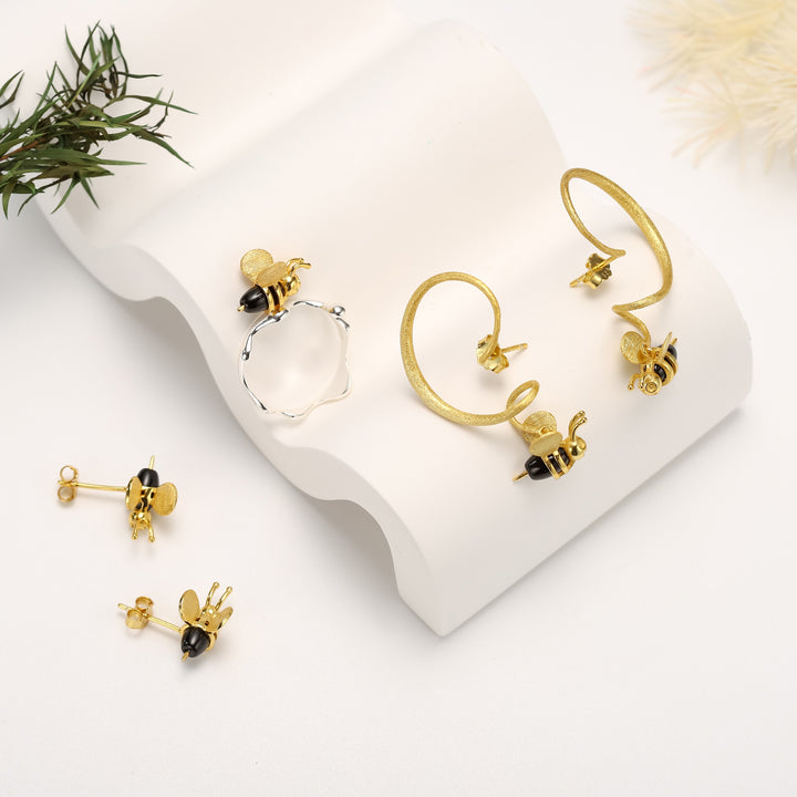 Bee & Dripping Honey 18k Gold Earrings Jewelry Set