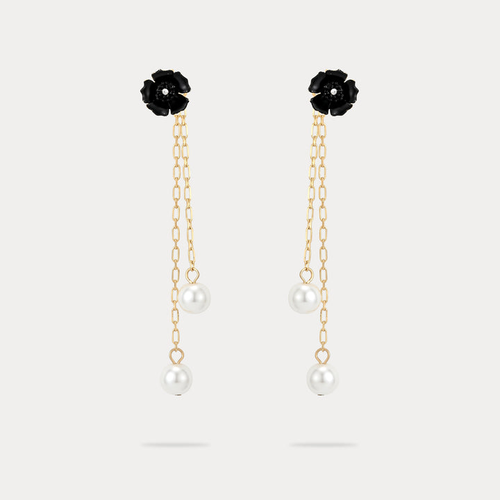 Elevate your style with our Black Flower Pearl Earrings. The intricate flower design adds a touch of elegance, while the black pearls exude sophistication. Be the talk of the town with these stunning earrings, perfect for any occasion.