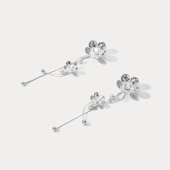 Be captivated by the charm of our Flowers Tassel Earrings. Exquisitely designed, these earrings feature shimmering floral accents paired with lustrous pearls, while cascading tassels bring graceful movement and a refined touch. Whether you seek a gentle and polished look for a date, want to stand out at a party, or hope to add a little elegance to your everyday wear, these Flowers Earrings adapt with ease. Wear them to enhance your style and express your unique fashion sense. With each appearance, these Tassel Earrings add a romantic glow that is entirely your own.