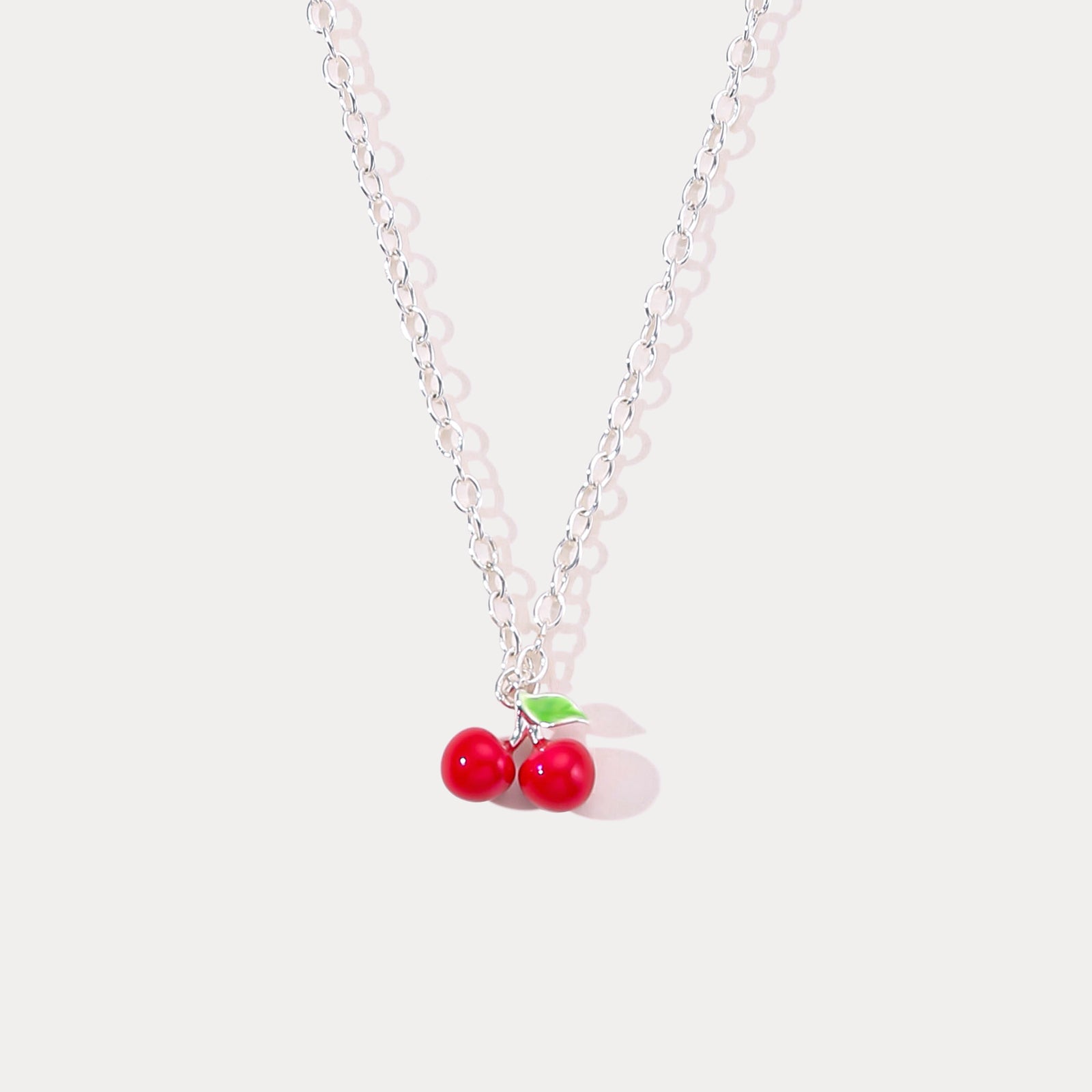 Cute as a button, this sterling silver cherry necklace is simply irresistible! Two plump, polished cherries dangle playfully, catching the light with every move. It's a sweet and charming touch, adding a pop of classic style and a juicy hint of fun to your look.