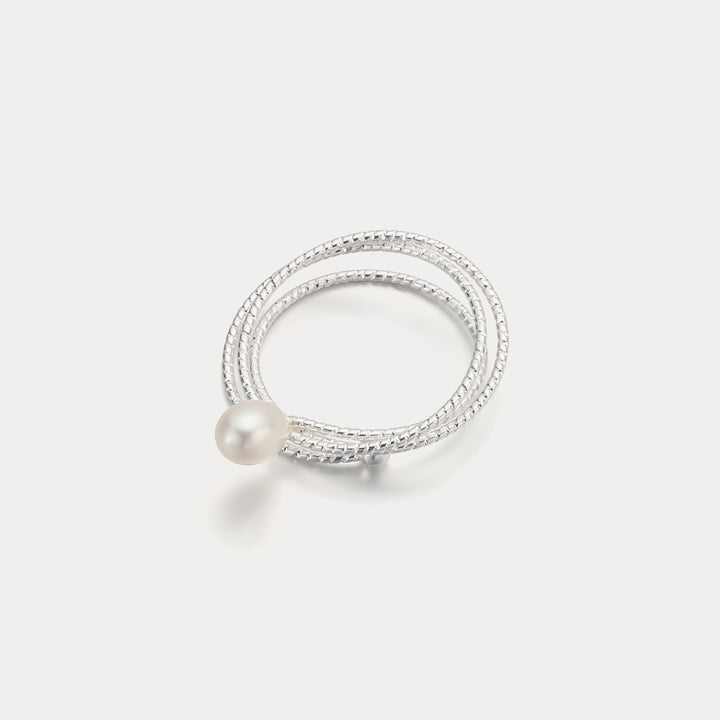 Selenichast Sterling Silver Triple Rolling Ring With Solitaire Pearl
