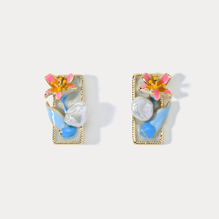 Experience the beauty of nature with our Oil Painting Flower Pearl Earrings. Each earring features a delicately hand-painted flower design and a lustrous pearl, creating a unique and stunning accessory. Elevate your style and add a touch of artistry to any outfit with these exquisite earrings.