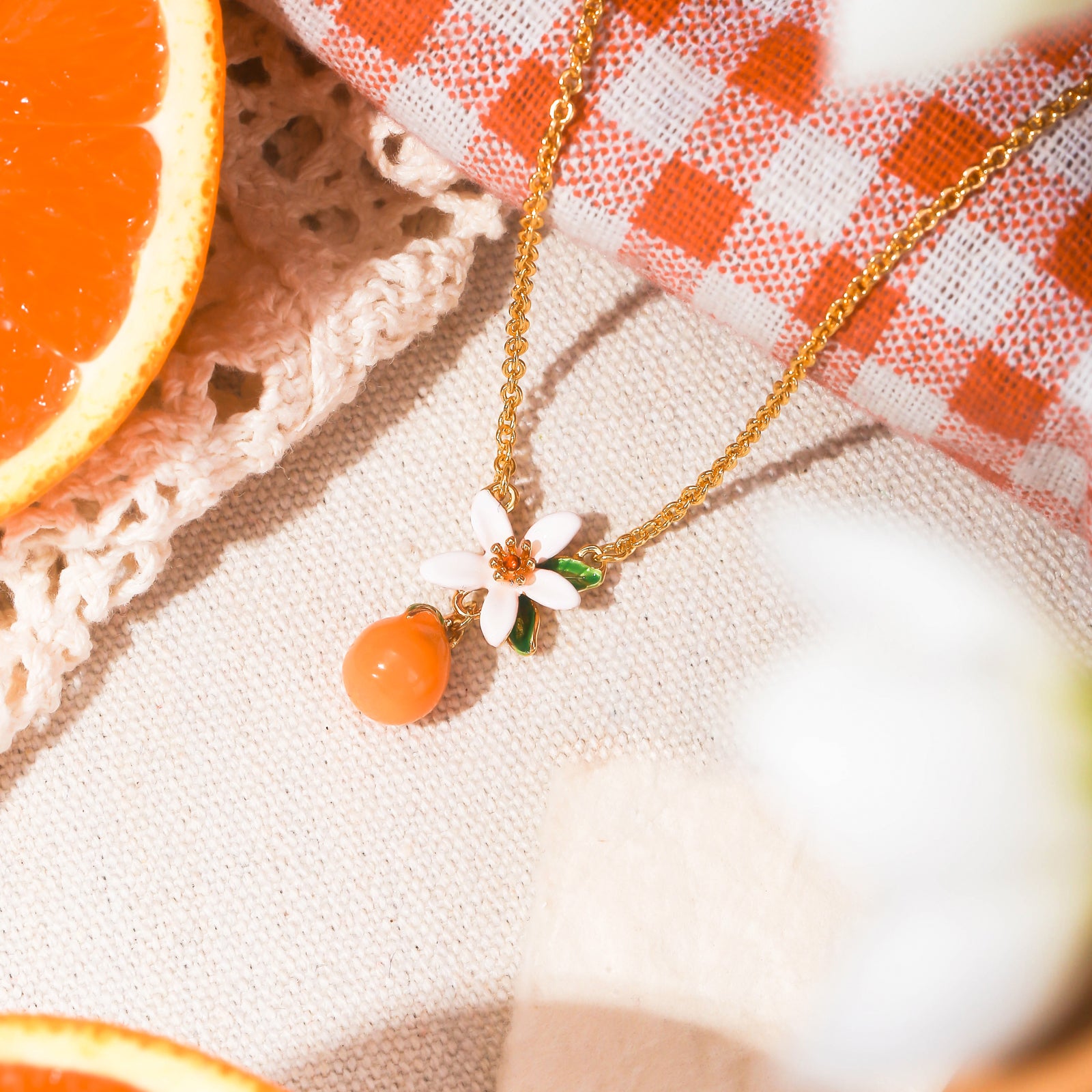 오렌지 꽃과 오렌지는이 훌륭한 오렌지 목걸이에서 만나서 여성들이 매일 의상에 미니멀하면서도 꽃이 만발한 터치를 더할 수 있도록 도와줍니다. 에나 멜로 된 솜씨는 꽃과 오렌지의 생생함을 보장 하면서이 목걸이에 너무 많은 생명과 단맛을줍니다. 모든 여성은이 멋진 오렌지 목걸이를 가질 자격이 있습니다.