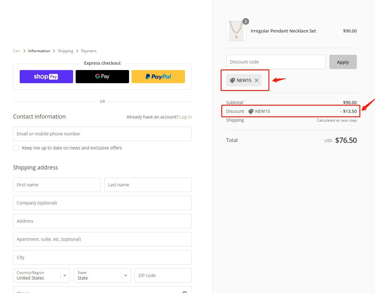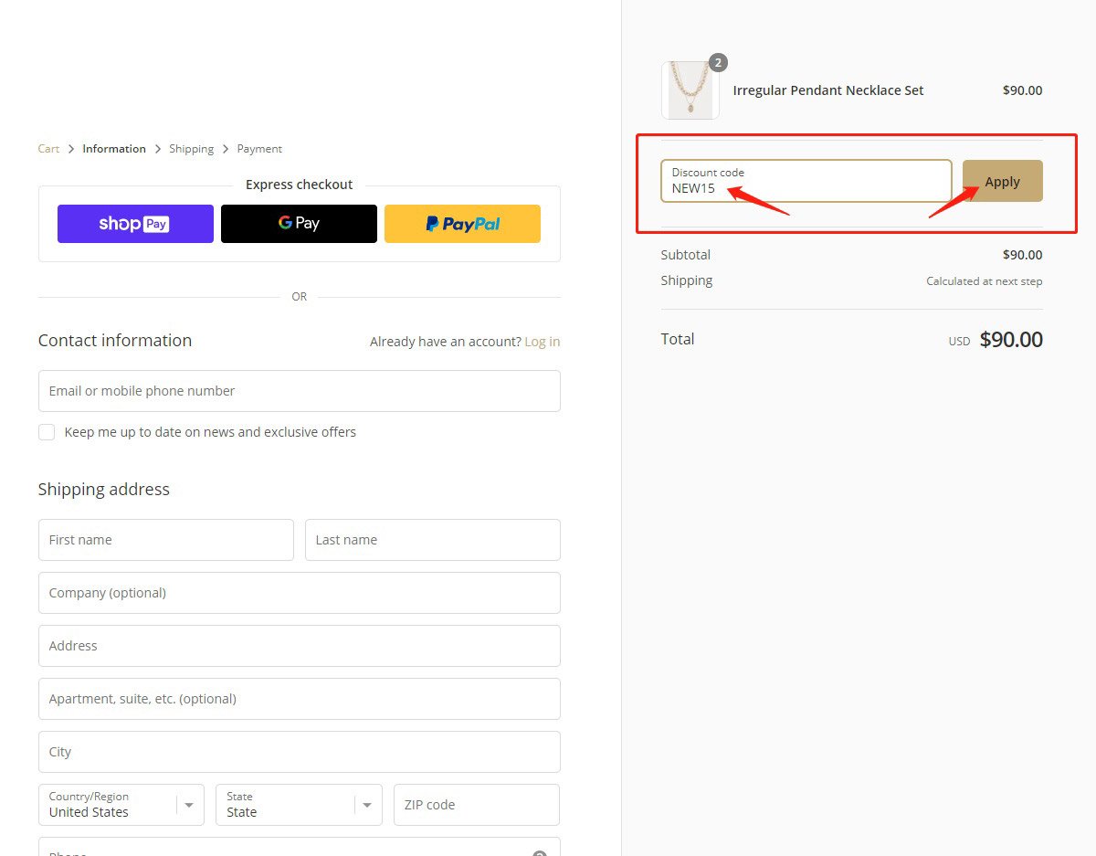 먼저 "체크 아웃"버튼을 클릭하십시오. 그런 다음 할인 코드를 입력하고 "적용"버튼을 클릭하십시오. Dicount 코드가 지금 작동합니다.