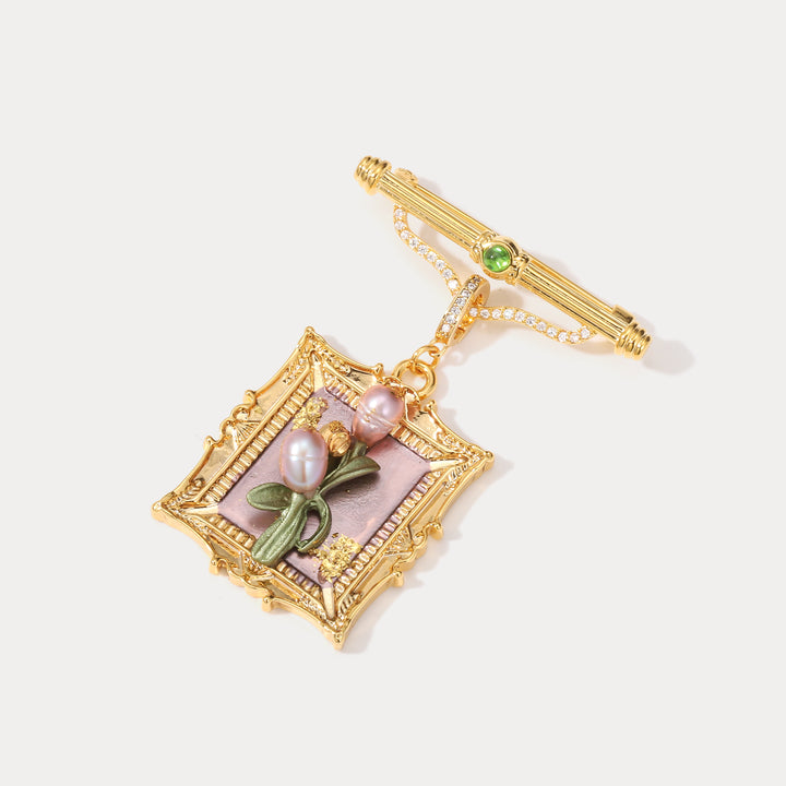빅토리아 시대 조각은 시대를 초월한 걸작 인 골동품 튤립 브로치를 장식합니다. 섬세한 튤립 꽃잎은 펼쳐져 19 세기의 화려한 예술성을 연상시키는 복잡한 스크롤 작업을 드러냅니다. 음란 한 진주는 이슬 키스 꽃처럼 빛나며 봄의 한도의 아름다움을 포착합니다. 이 절묘한 브로치는 식물 마법과 구식 우아함으로 앙상블을 높이고 매력적인 매력으로 시대를 초월합니다.