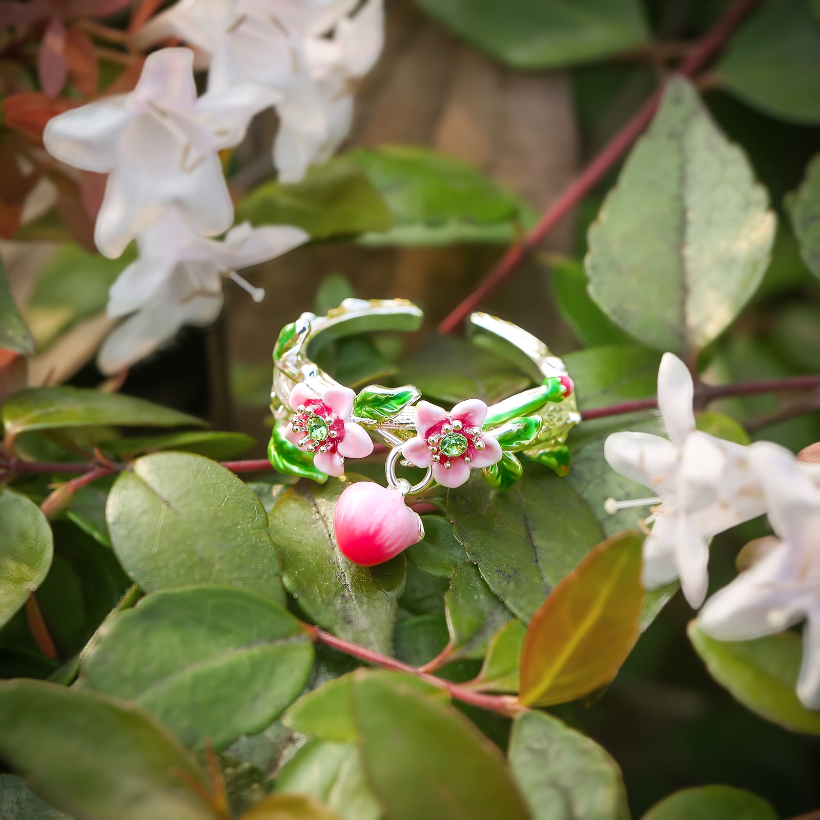 Acest inel argint cu flori de piersici combină farmecul delicat cu stilul versatil. Designul său reglabil asigură o potrivire perfectă pentru orice deget, făcându-l un accesoriu ideal pentru purtarea de zi cu zi sau ocazii speciale. Perfect pentru a adăuga o notă de frumusețe florală oricărei ținute, acest inel vă permite să purtați farmecul unei grădini oriunde ați merge. Îmbrățișați grația inspirată de natură cu fiecare purtare. 👉 Magazin Mai mult Fructe bijuterii.