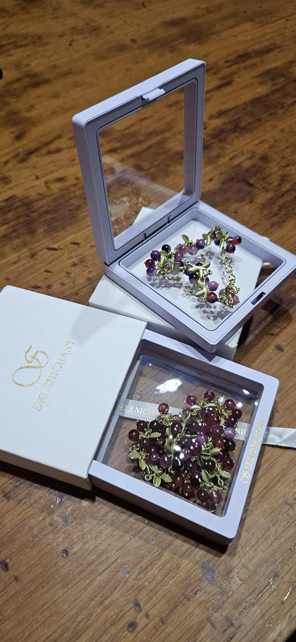 Păstrați-vă bijuteriile în cutia originală Selenichast (și păstrați-le într-un loc răcoros și uscat) pentru a menține strălucirea și a prelungi viața. Dacă trebuie să vă curățați bijuteriile, utilizați doar o cârpă neabrazivă din bumbac sau din microfibră.